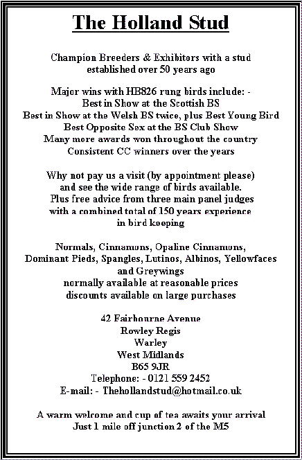 OF QUALITY BUDGERIGARS